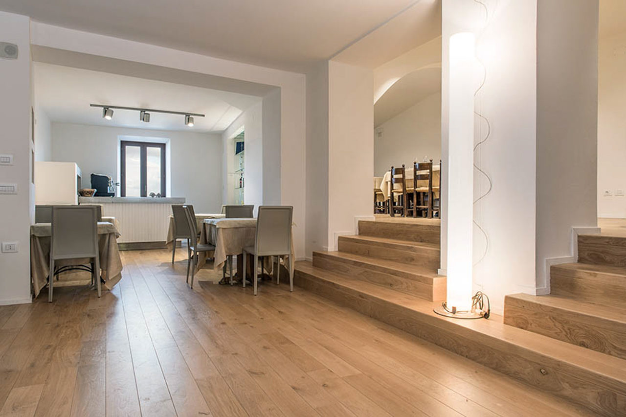 I lavori hanno interessato sia gli spazi interni che quelli funzionali alla nuova destinazione d’uso, con particolare attenzione al ripristino dei soffitti con volte in pietra, al miglioramento del comfort abitativo e all’adeguamento impiantistico.